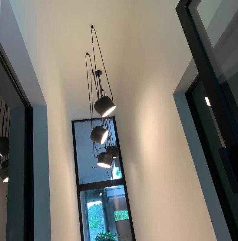Uno dei loro progetti più celebri è proprio la lampada Aim, concepita per Flos nel 2010–2013: una sospensione libera dai vincoli tradizionali, con cavi lunghi e orientabili che permettono di disegnare la luce nello spazio in modo dinamico e poetico