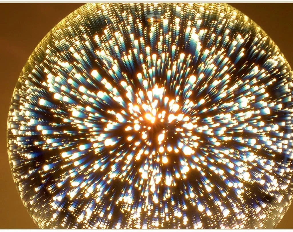 Il corpo in vetro riflettente crea un effetto visivo simile a fuochi d'artificio, trasformando ogni spazio in un'atmosfera suggestiva.